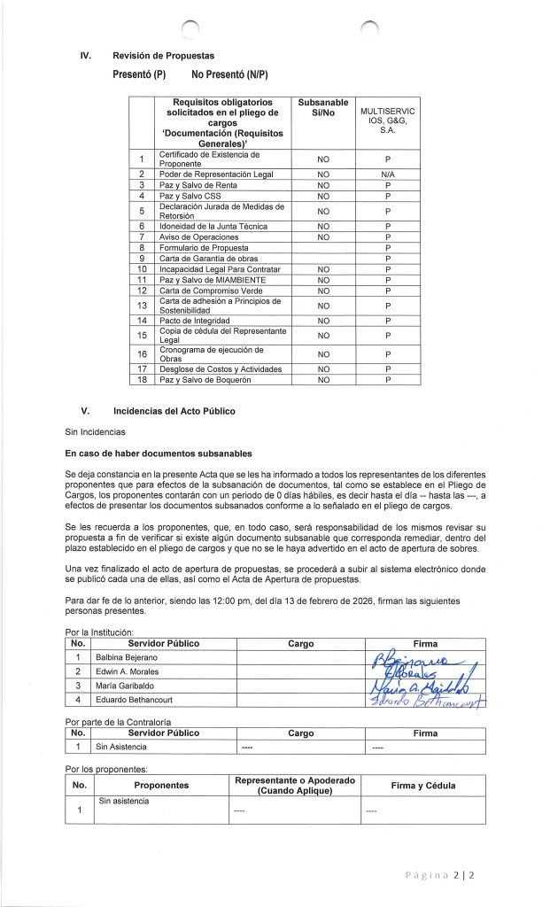 -NoticiasPUBLICACIÓN DE CUADRO DE COTIZACIONES PARA: «MEJORAMIENTO DE CAMINOS EN EL CORREGIMIENTO DE PARAÍSO. VIGENCIA 2021» 10 de febrero de 2026Read more -NoticiasAVISO DE CONVOCATORIA PARA: «MEJORAMIENTO DE CAMINOS CUNETAS Y PARADAS EN EL DISTRITO DE BOQUERÓN, ETAPA II». 10 de febrero de 2026Read more