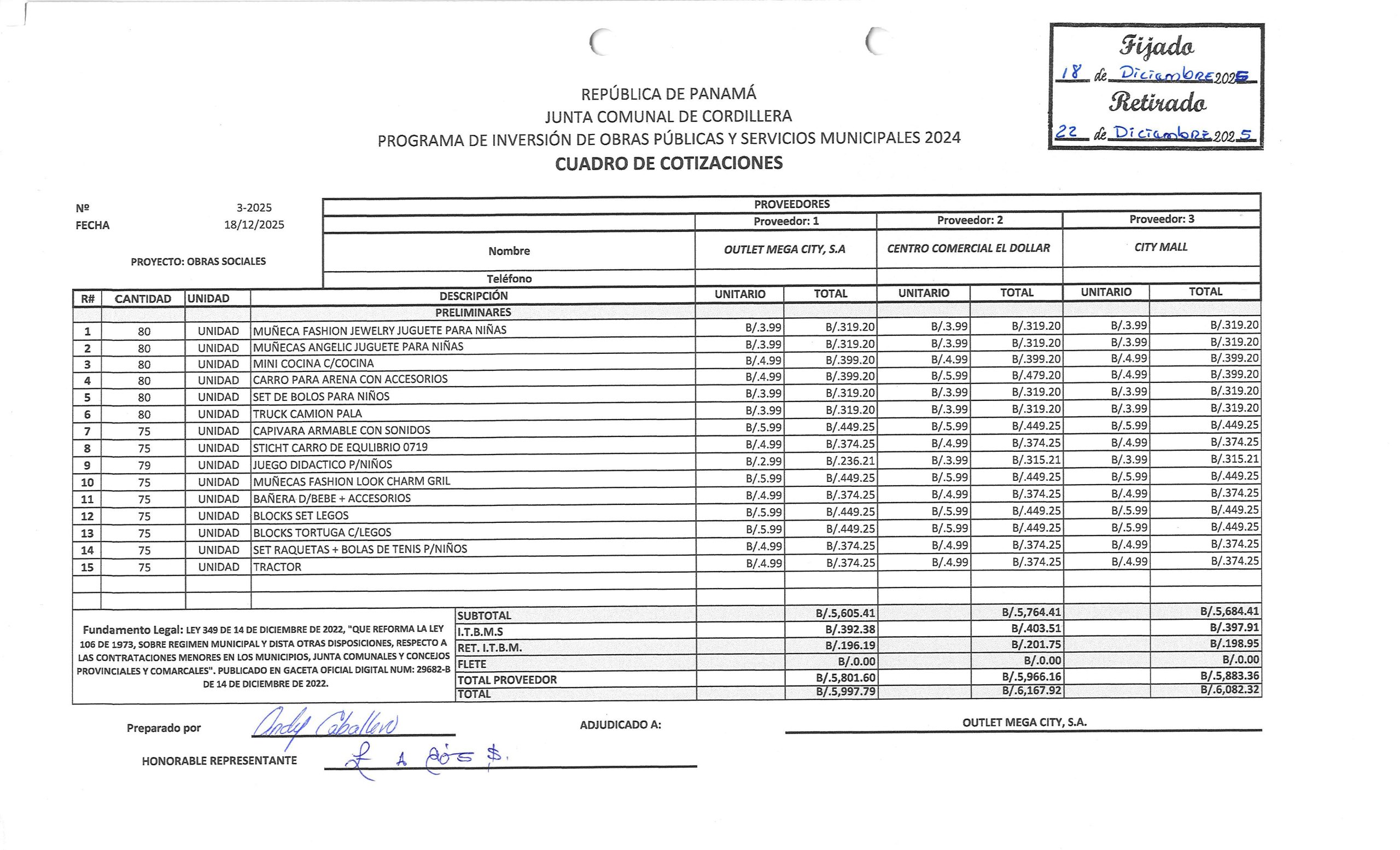 -NoticiasPUBLICACIÓN DE CUADRO DE COTIZACIONES DE LA JUNTA COMUNAL DE BOQUERÓN PARA: «MEJORAMIENTO DE CAMINOS EN EL CORREGIMIENTO, 2024» 30 de enero de 2026Read more -NoticiasPUBLICACIÓN DE CUADRO DE COTIZACIONES DE LA JUNTA COMUNAL DE BOQUERÓN PARA: «MEJORAMIENTO DE CAMINOS EN EL CORREGIMIENTO» 30 de enero de 2026Read more -NoticiasAVISO DE CONVOCATORIA PARA: «MEJORAMIENTO DE INFRAESTRUCTURA COMUNITARIA, CORREGIMIENTO DE BOQUERÓN, DISTRITO DE BOQUERÓN» 15 de enero de 2026Read more -NoticiasAVISO DE CONVOCATORIA DE LA JUNTA COMUNAL DE BÁGALA PARA: «MEJORAMIENTO A LA CANCHA DE CABUYA» 13 de enero de 2026Read more
